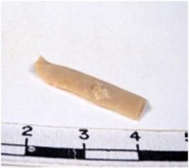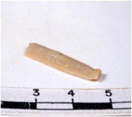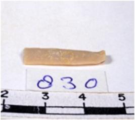 | Description / विवरण | A fragment of a rectangular shaped chert blade showing dorsal sides with sharp cutting edges having smooth surface and triangular section. |