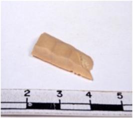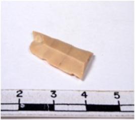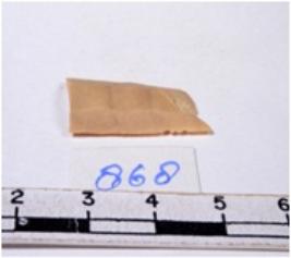 | Description / विवरण | A fragment of a rectangular shaped chert blade showing dorsal sides with sharp edges having smooth surface and triangular section. |