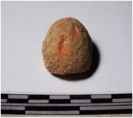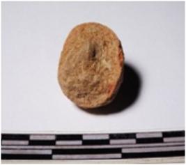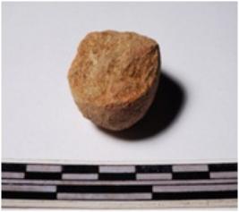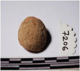 | Description / विवरण | A fragment of a terracotta round shaped sling ball, circular in section of smooth surface. |