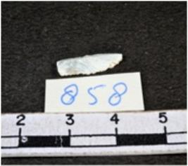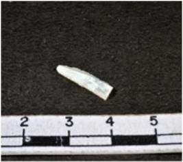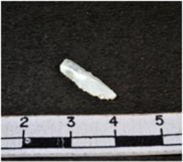 | Description / विवरण | A fragment of a rectangular shaped chalcedony showing dorsal sides with sharp edges having smooth surface and triangular section. |