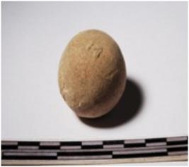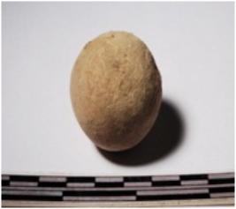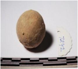 | Description / विवरण | A terracotta sling ball round in shape of smooth surface. |