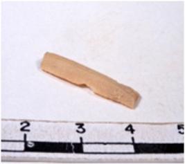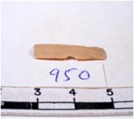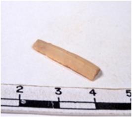 | Description / विवरण | A fragment of a rectangular shaped chert blade showing chert blade showing dorsal sides with sharp edges having smooth surface and triangular section. |