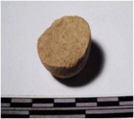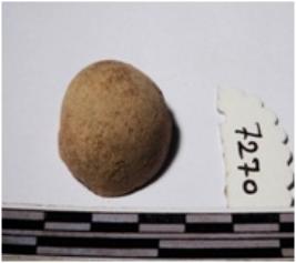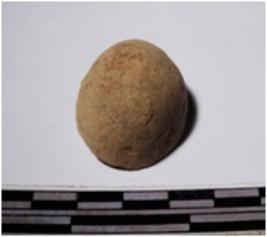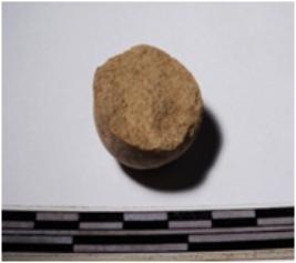 | Description / विवरण | A fragment of a terracotta round shaped sling ball, circular in section of smooth surface. |