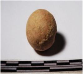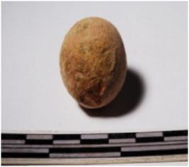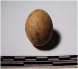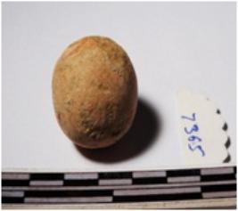 | Description / विवरण | A terracotta sling ball round in shape of smooth surface. |