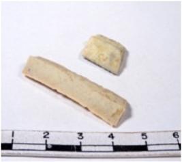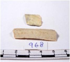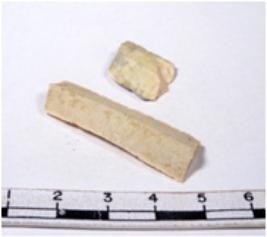 | Description / विवरण | A fragment of a rectangular shaped chert blade showing dorsal sides with sharp cutting edges having smooth surface and triangular section. |