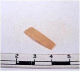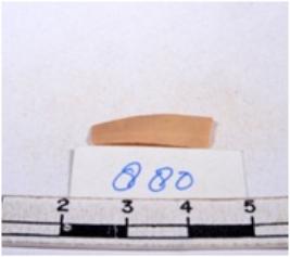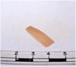 | Description / विवरण | A fragment of a rectangular shaped chert blade showing dorsal sides with sharp edges having smooth surface and triangular section. |