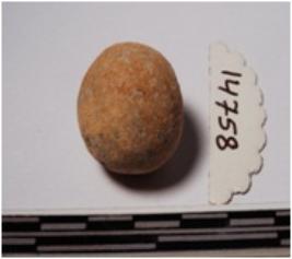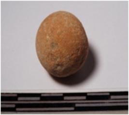 | Description / विवरण | A terracotta round in shaped sling ball, circular in section of smooth surface. |