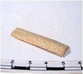 | Description / विवरण | A fragment of a rectangular shaped chert blade showing dorsal sides with sharp edges having smooth surface and triangular section. |