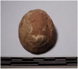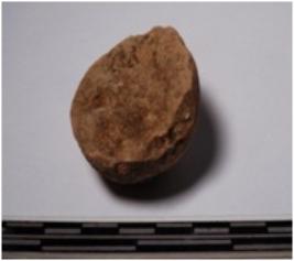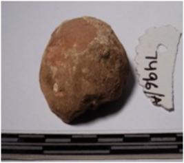 | Description / विवरण | A fragment of a terracotta round shaped sling ball of smooth surface. |