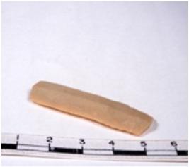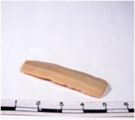 | Description / विवरण | A fragment of a rectangular shaped chert blade showing dorsal sides with sharp edges having smooth surface and triangular section. |