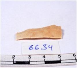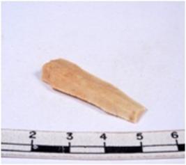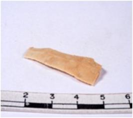 | Description / विवरण | A fragment of a rectangular shaped chert blade showing dorsal sides with sharp cutting edges having smooth surface and triangular section. |