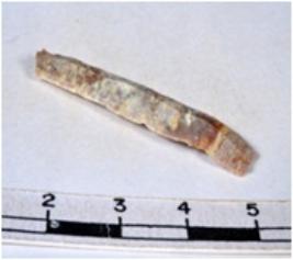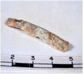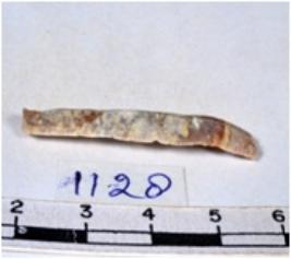 | Description / विवरण | A fragment of a rectangular shaped chert blade showing dorsal sides with sharp edges having smooth surface and triangular section. |