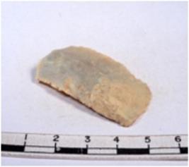 | Description / विवरण | A fragment of a rectangular shaped chert blade showing dorsal sides with sharp edges having smooth surface and triangular section. |