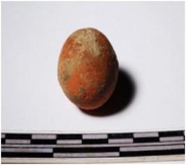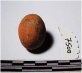 | Description / विवरण | A terracotta round in shaped sling ball, circular in section of smooth surface. |