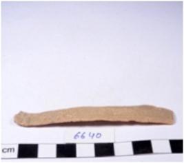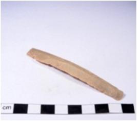 | Description / विवरण | A fragment of a rectangular shaped chert blade showing dorsal sides with sharp edges having smooth surface and triangular section. |