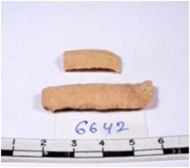 | Description / विवरण | A fragment of a rectangular shaped chert blade showing parallel sides with sharp edges having smooth surface and triangular section. |