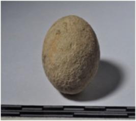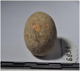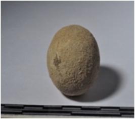 | Description / विवरण | A terracotta sling ball, round in shaped and rough surface. |