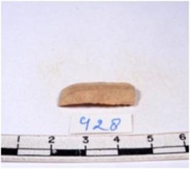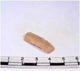 | Description / विवरण | A fragment of a rectangular shaped chert blade showing dorsal sides with sharp cutting edges having smooth surface and triangular section. |