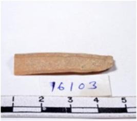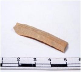 | Description / विवरण | A fragment of a rectangular shaped chert blade showing dorsal sides with sharp edges having smooth surface and triangular section. |