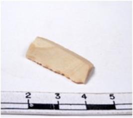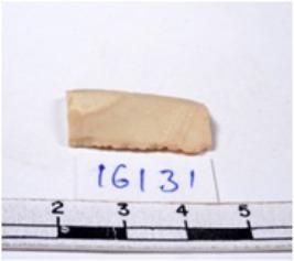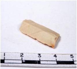 | Description / विवरण | A fragment of a rectangular shaped chert blade showing dorsal sides with sharp edges having smooth surface and triangular section. |