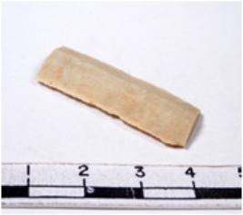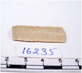 | Description / विवरण | A fragment of a rectangular shaped chert blade showing parallel sides with sharp edges having smooth surface and uneven section. |