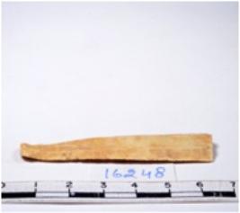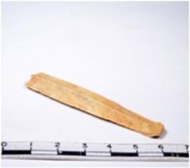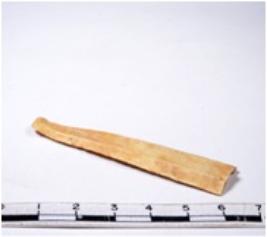 | Description / विवरण | A fragment of a rectangular shaped chert blade showing parallel sides with sharp edges having smooth surface and uneven section. |