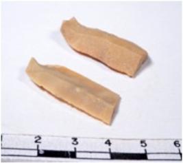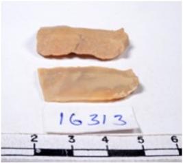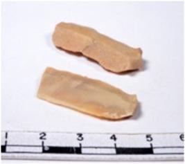 | Description / विवरण | A fragment of a rectangular shaped chert blade showing dorsal sides with sharp cutting edges having smooth surface and triangular section. |