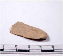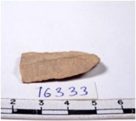 | Description / विवरण | A fragment of a rectangular shaped chert blade showing dorsal sides with sharp edges having smooth surface and triangular section. |