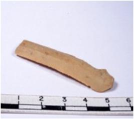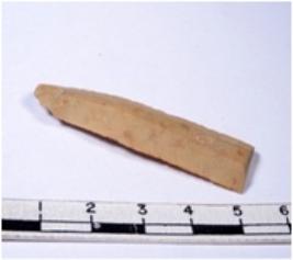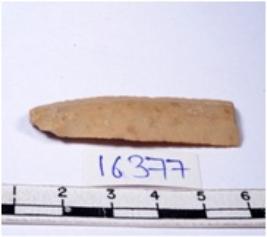 | Description / विवरण | A fragment of a rectangular shaped chert blade showing dorsal sides with sharp cutting edges having smooth surface and triangular section. |