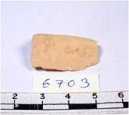 | Description / विवरण | A fragment of a rectangular shaped chert blade showing dorsal sides with sharp edges having smooth surface and triangular section. |