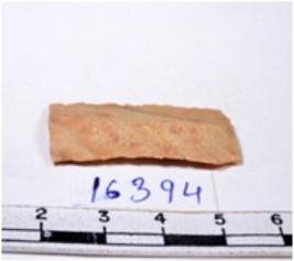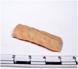 | Description / विवरण | A fragment of a rectangular shaped chert blade showing dorsal sides with sharp edges having smooth surface and triangular section. |