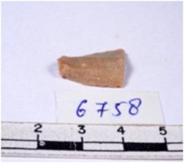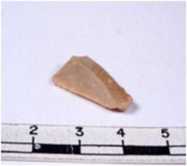 | Description / विवरण | A fragment of a rectangular shaped chert blade showing dorsal sides with sharp cutting edges having smooth surface and triangular section. |