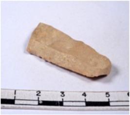 | Description / विवरण | A fragment of a rectangular shaped chert blade showing parallel sides with sharp edges having smooth surface and uneven section. |