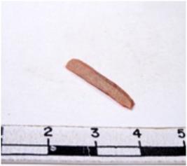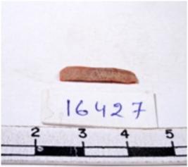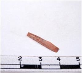 | Description / विवरण | A fragment of a rectangular shaped chert blade showing dorsal sides with sharp edges having smooth surface and triangular section. |