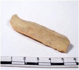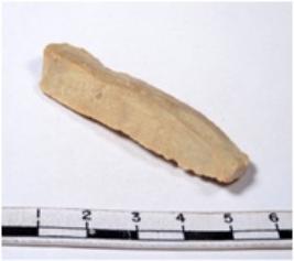 | Description / विवरण | A fragment of a rectangular shaped chert blade showing dorsal sides with sharp edges having smooth surface and triangular section. |