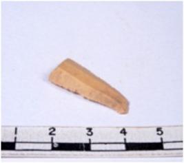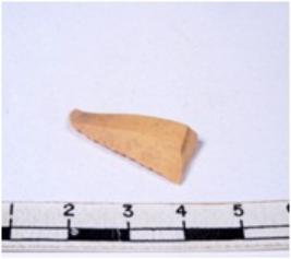 | Description / विवरण | A fragment of a rectangular shaped chert blade showing dorsal sides with sharp cutting edges having smooth surface and triangular section. |