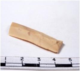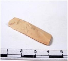 | Description / विवरण | A fragment of a rectangular shaped chert blade showing dorsal sides with sharp edges having smooth surface and triangular section. |