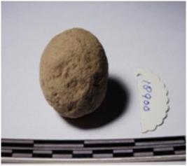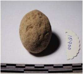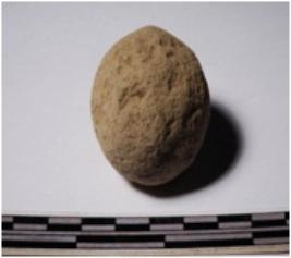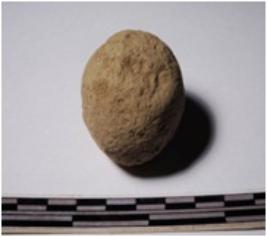 | Description / विवरण | A terracotta sling ball round in shape of smooth surface. |