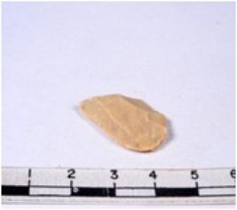 | Description / विवरण | A fragment of a rectangular shaped chert blade showing dorsal sides with sharp edges having smooth surface and triangular section. |