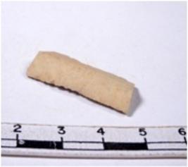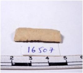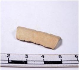 | Description / विवरण | A fragment of a rectangular shaped chert blade showing dorsal sides with sharp edges having smooth surface and triangular section. |