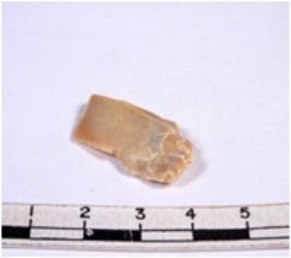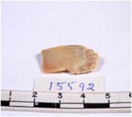 | Description / विवरण | A fragment of a rectangular shaped chert blade showing dorsal sides with sharp cutting edges having smooth surface and triangular section. |