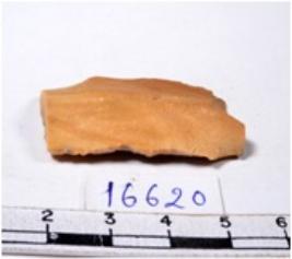 | Description / विवरण | A fragment of a rectangular shaped chert blade showing dorsal sides with sharp edges having smooth surface and triangular section. |