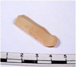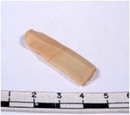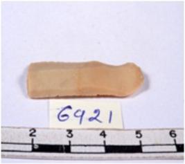| Description / विवरण | A fragment of a rectangular shaped chert blade showing dorsal sides with sharp edges having smooth surface and triangular section. |