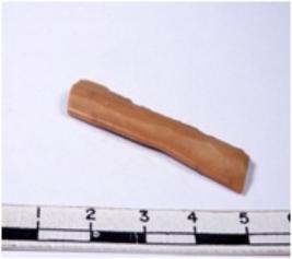 | Description / विवरण | A fragment of a rectangular shaped chert blade showing dorsal sides with sharp edges having smooth surface and triangular section. |