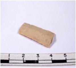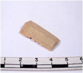 | Description / विवरण | A fragment of a rectangular shaped chert blade showing dorsal sides with sharp cutting edges having smooth surface and triangular section. |