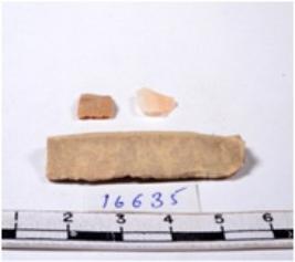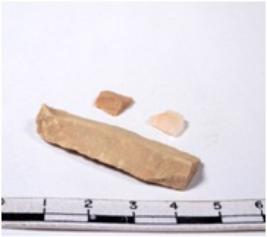 | Description / विवरण | A fragment of a rectangular shaped chert blade showing dorsal sides with sharp cutting edges having smooth surface and triangular section. |