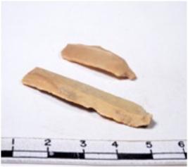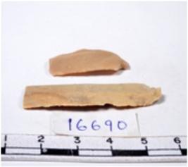| Description / विवरण | A fragment of a rectangular shaped chert blade showing dorsal sides with sharp edges having smooth surface and triangular section. |