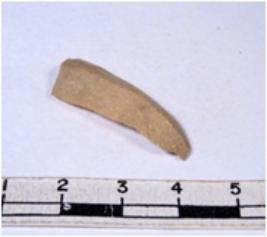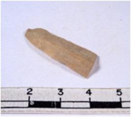 | Description / विवरण | A fragment of a rectangular shaped chert blade showing dorsal sides with sharp edges having smooth surface and triangular section. |
