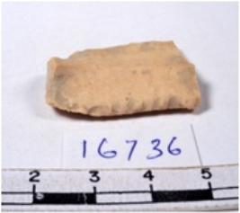 | Description / विवरण | A fragment of a rectangular shaped chert blade showing dorsal sides with sharp cutting edges having smooth surface and triangular section. |