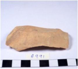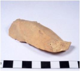 | Description / विवरण | A fragment of a rectangular shaped chert blade showing dorsal sides with sharp cutting edges having smooth surface and triangular section. |